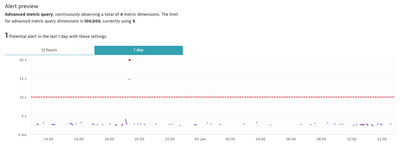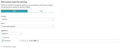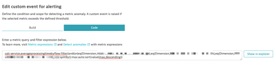 I am trying to configure custom alerts for a service's processing time. These alerts are based on a calculated service metric I created that allows me to filter request data by certain dimension; request attributes.