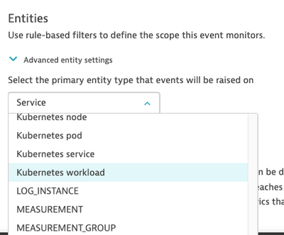 • For the alert that uses the 'code' option, I am unable to set these entity scopes (i.e. I can't select management zone from the dropdown).