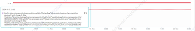 I received the "Kubernetes PVC: Low Disk Space %" alarm, but I'm unsure why it was triggered. The threshold is set to 15%, and in reality, there is no disk space usage. and after I lowered the threshold to 14%, the issue was resolved — despite no disk space being used.