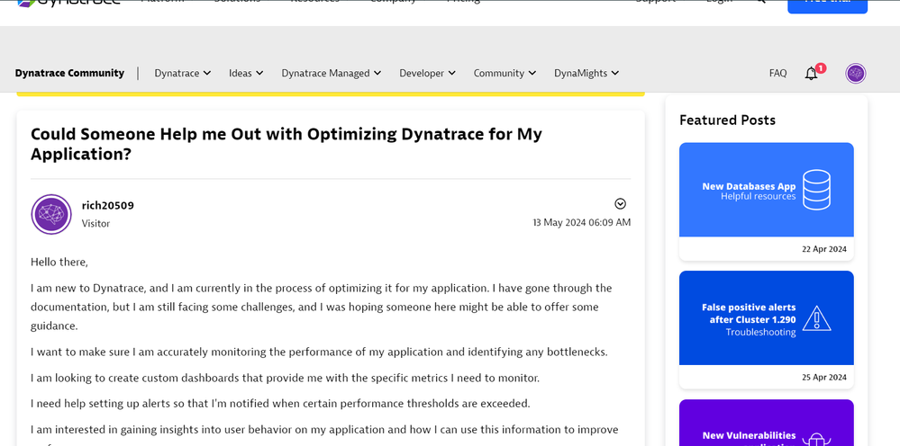 Post url= https://community.dynatrace.com/t5/Ask-Moderators/Could-Someone-Help-me-Out-with-Optimizing-Dynatrace-for-My/m-p/245380#M899