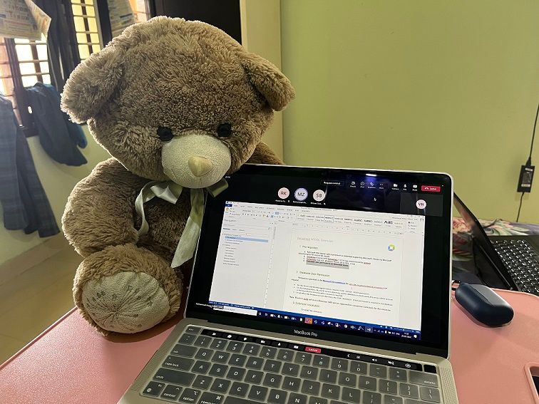 I have my MacBook Pro and the Teddy bear that I like to keep while working. This is really a cool challenge though!!!