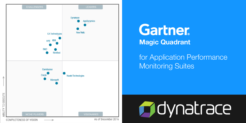 Please take a moment to read a new blog post from our CEO, John Van Siclen, on Dynatrace's 7th year in a row in a leadership position in the just-released 2016 Gartner Magic Quadrant for APM Suites. We're proud of the work we've done and happy to be recognized for it.