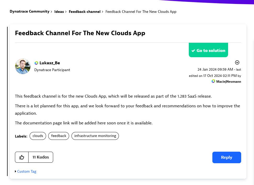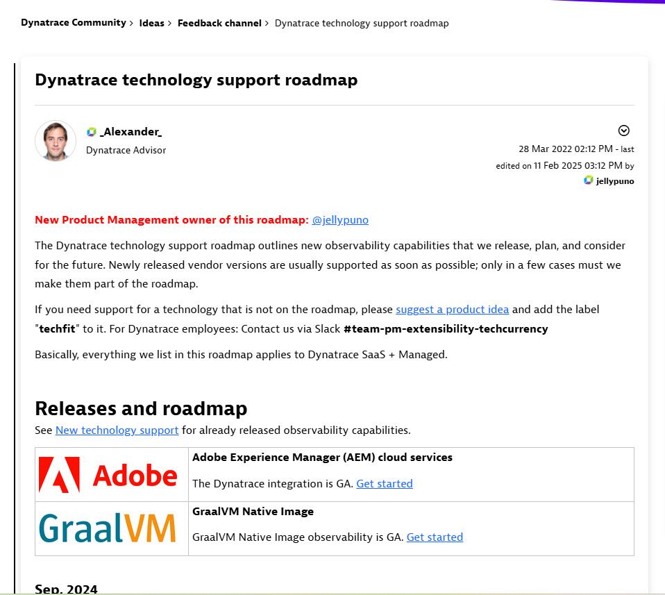 Find threads dedicated to specific features that were recently introduced or are about to be released in Dynatrace. Voice your opinion directly to the person responsible for designing the feature, suggest areas of improvement, discuss the next steps, or simply express your appreciation.