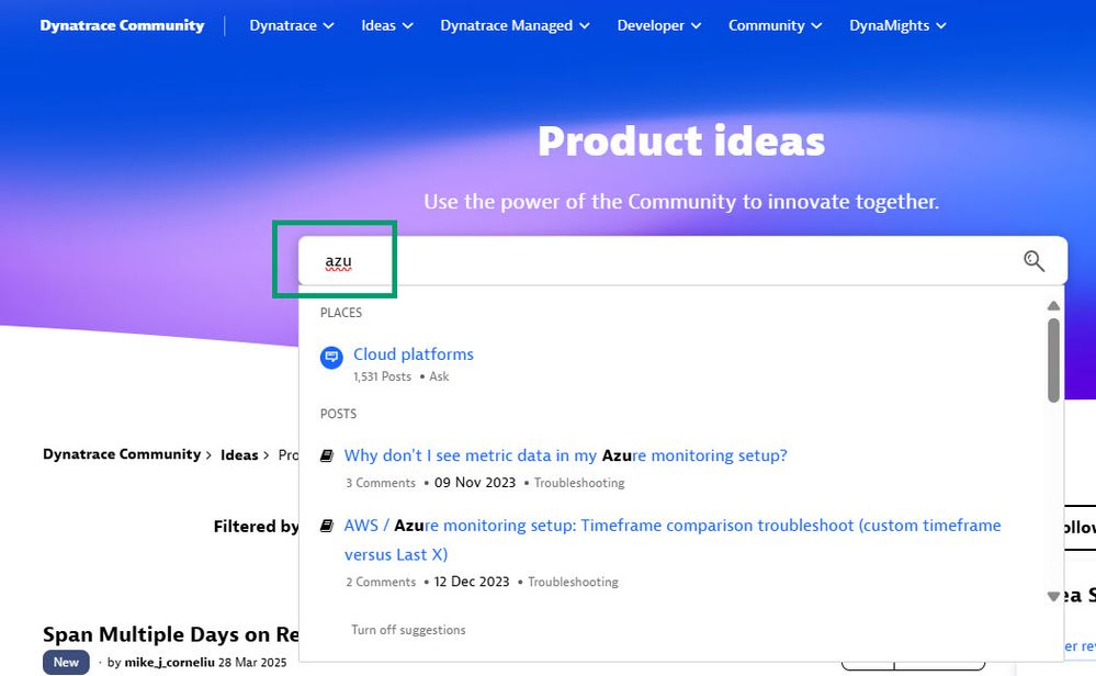 Remember, your input drives innovation at Dynatrace. Start sharing your ideas today!