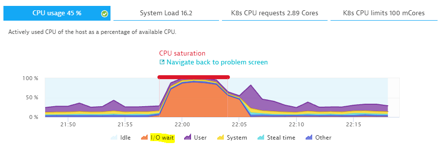 What exactly is the CPU I/O wait? Particularly with the reference to Kubernetes Master/Worker nodes?