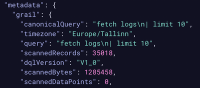 1. When you execute your DQL query, you can set the display options (Options -> Visualization) to "raw response". That will display the whole Grail response in JSON format. Scrolling down to the "metadata" object you will find your DQL query in the JSON payload (see metadata.grail.query)