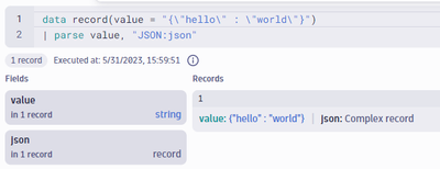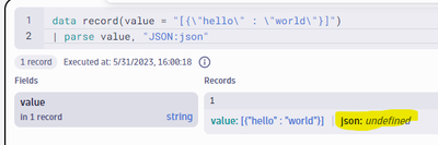 parse a JSON string that contains an array on the top level?data record(value = "{\"hello\" : \"world\"}")