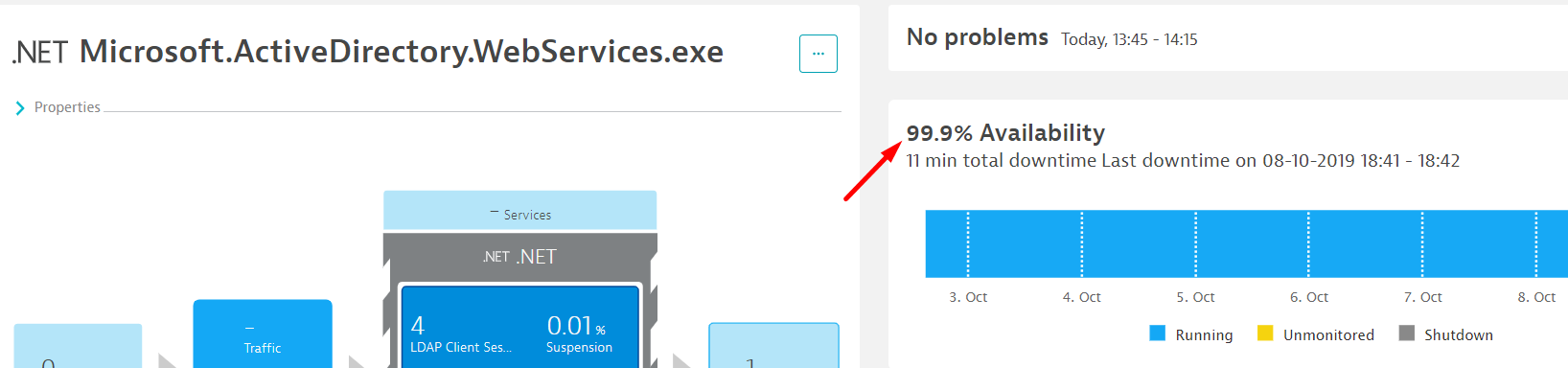 At the moment, availability metrics aren't supported to be charted or alerted on, but we're working on that. Nevertheless, a number of general process metrics can be found under the metric registry Path Technology > Generic