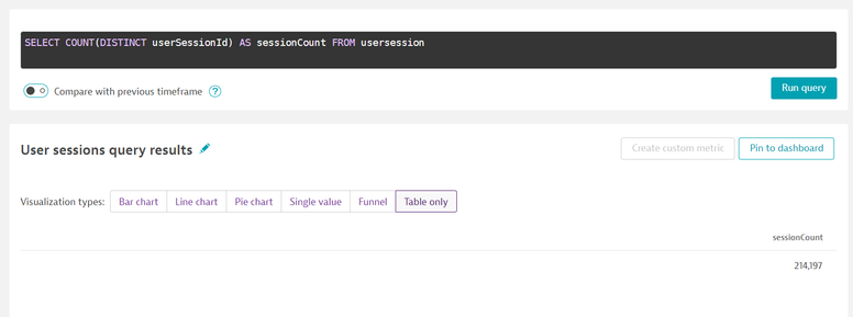 SELECT COUNT(DISTINCT userSessionId) AS sessionCount