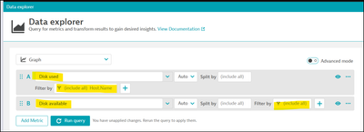 ((builtin:host.disk.used:filter(or(eq("dt.entity.host",HOST-B97413FA4A1FBB7D),eq("dt.entity.host","HOST-F85861AD01B335FE"))):filter(or(in("dt.entity.disk",entitySelector("type(DISK) AND fromRelationship.isDiskOf(type(HOST),entityId(HOST-B97413FA4A1FBB7D))")),in("dt.entity.disk",entitySelector("type(DISK) AND fromRelationship.isDiskOf(type(HOST),entityId(HOST-F85861AD01B335FE))")))))+(builtin:host.disk.avail:filter(or(eq("dt.entity.host",HOST-B97413FA4A1FBB7D),eq("dt.entity.host","HOST-F85861AD01B335FE"))):filter(or(in("dt.entity.disk",entitySelector("type(DISK) AND fromRelationship.isDiskOf(type(HOST),entityId(HOST-B97413FA4A1FBB7D))")),in("dt.entity.disk",entitySelector("type(DISK) AND fromRelationship.isDiskOf(type(HOST),entityId(HOST-F85861AD01B335FE))")))))):splitBy("dt.entity.host"):sum