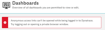 Public sharing of dashboard is possible, so today, the remediation for the user is to use another browser to see the public link .