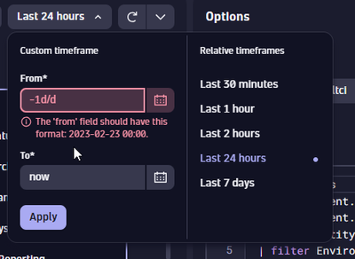 What is the equivalent of this in the new dynatrace platform when choosing a timeframe? -1d/d doesn't seem to work.
