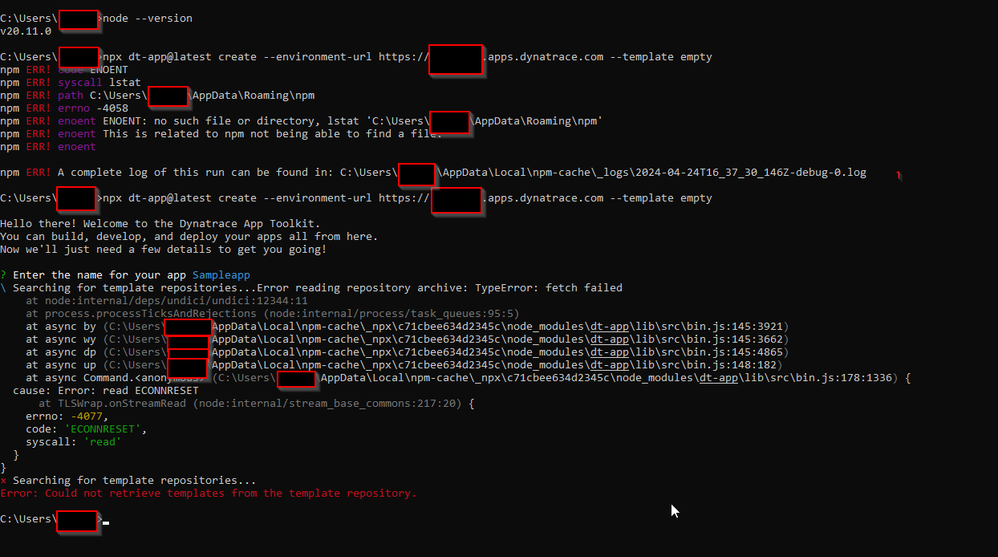 at async up (C:\Users\XXXX\AppData\Local\npm-cache\_npx\c71cbee634d2345c\node_modules\dt-app\lib\src\bin.js:148:182)