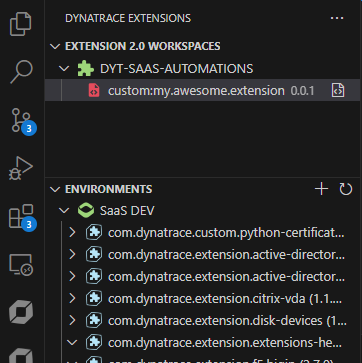 - installed the VS Code extension [Dynatrace Extensions] 2.6.5