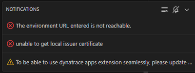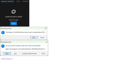 I am experiencing authentication/connection issue working in VS Code using the Dynatrace extensions.
