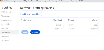 You can try to limit these settings in a browser (for example, chrome) and try to upload the archive. Perhaps 2-3 hours later - instead of 15 minutes - you will upload it, because the network control utilities will not break your connection. I had such a case. Hope this helps.