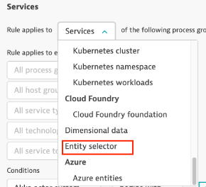 To fix this, "entity selector" option can be used like below. Make sure services are having tags.