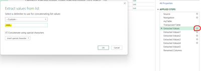 #"Extracted Values4" = Table.TransformColumns(#"Extracted Values3", {"Column7", each Text.Combine(List.Transform(_, Text.From), ", "), type text}),