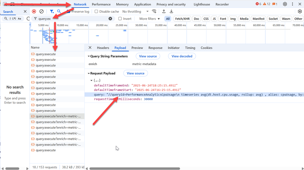 If you are looking to build DQL statements for things such as Forecasting, Seasonal/adaptive baselining, an a metric already exists on a ready-made dashboard or any metric, you can uncover the query via Network Tools.