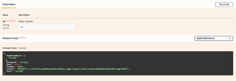 • CMC > user menu > cluster Api v1 > internet proxy > put/proxy/configurations/{dc}