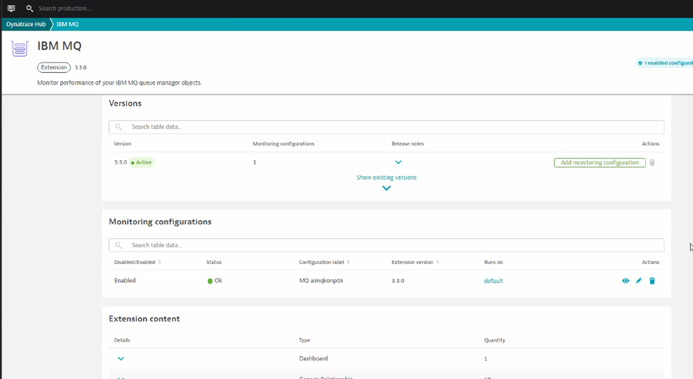 I've configured IBM MQ Extension. Status seems OK but i see just one metric. Here you can see a visual of this situation: