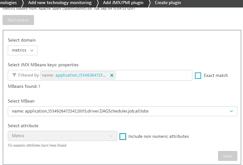 We created JMX plugin through plugin editor. we have added few metrics to see if it works. Sadly it is not capturing any data. We run Spark job for testing but no luck.