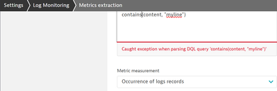 So I can use "contains" in a dql filter but not as a matcher when creating a log-metric: