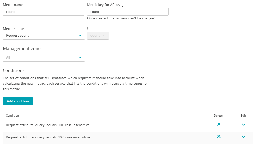 I can`t tell to Dynatrace - to count requests that have 101 or 102....