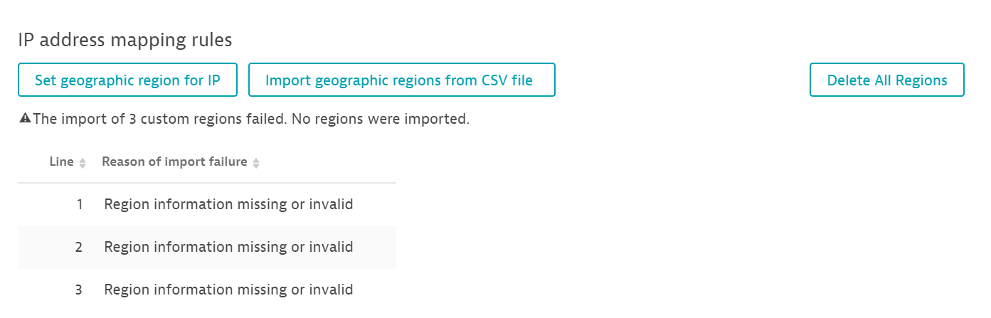 Hi, I have around 11k private IP Address - locations which have the below format. While importing at once it always keeps complaining below error. However, When i import the entries in batch manner (by country) then there is no error and import is successful. I think i am hitting a bug there.