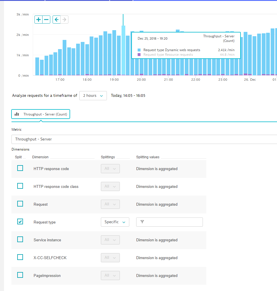 To monitoring system traffic, I usually build a 'Multidimensional Analysis' by using request type.