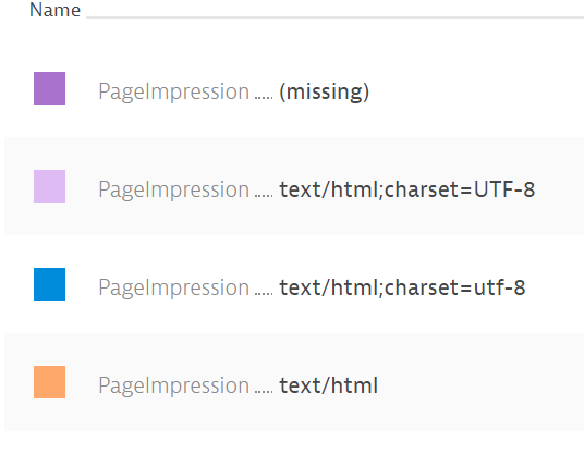 Page impression is actually pageview, missing parameter is responsible for encoding. Missing means that on some of pages such meta tag was not available.
