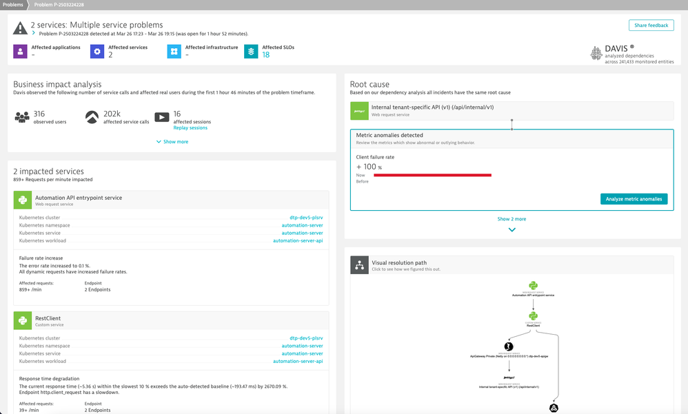 Diagnose anomalies with Davis AI down to the broken code:
