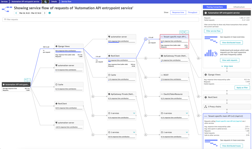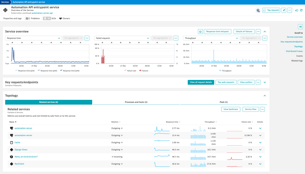 Automatically detect your Python applications across every tier and diagnose anomalies with Davis AI to determine the root cause down to the broken code. End-to-end service observability combined with code-level insights and exception analysis will help you ensure the robustness of your production environment.