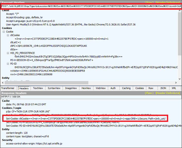 The first one was issued on the response header of URL "/orb_uat/orb/top_menu/launch"