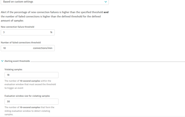 - specify the detection mode either automatic or based on specific thresholds upon violation alert will be triggered.