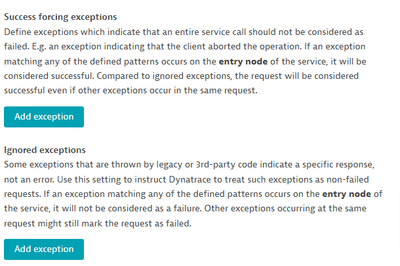 • There are some cases where you are still getting Failure rate because the Status code is having an exception, which should also be either IGNORED or should be treated as SUCCESS. For that, you would need to define the list of exceptions that should not be a failure. You can add the exceptions in either of the configurations.