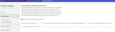 • When setting Failure detection rule on Service level, the Global Rule will not be applied here for HTTP status code as well as General Parameter(Exceptions).