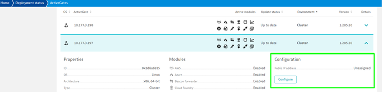 • Checking Cluster ActiveGate Public IP address.