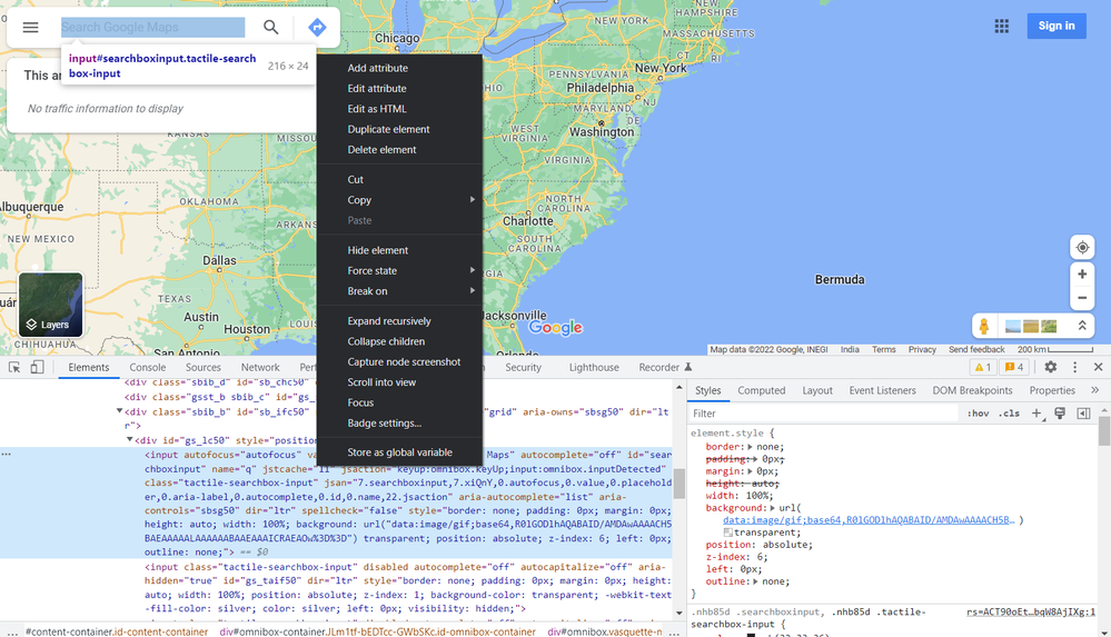 var element = document.querySelector("#searchboxinput"); //Replace with the element which you want to perform the Location Dropdown