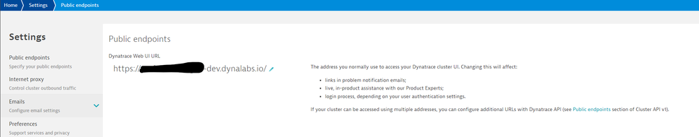 If they are not the same then you can either edit the public endpoint in the settings or add the URL as an additional public endpoint via cluster management API.